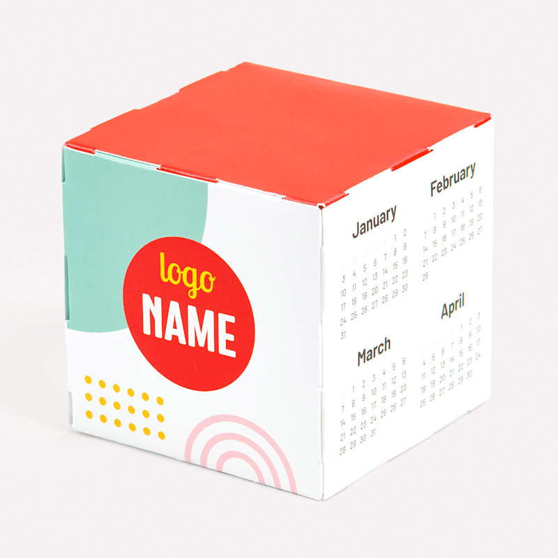 Mooie kubuskalender met uw reclame voor op uw bureau.